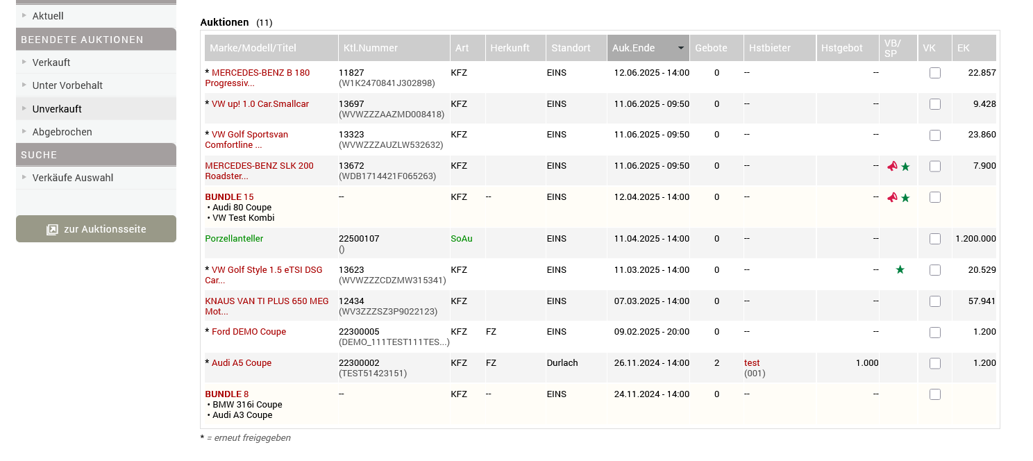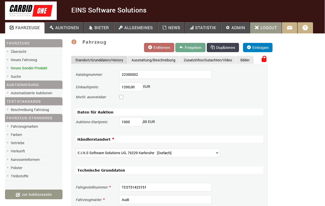 Eine Testversion gibt es nicht. Da es keine Mindestlaufzeit bzw. keinen Mindestumsatz pro Monat gibt, ist die Nutzung risikofrei und kann jederzeit beendet werden. Da die Fahrzeugdaten immer neu für die Auktionen importiert / angelegt werden müssen, gibt es eine Importfunktion nur für die Fahrzeudstammdaten.